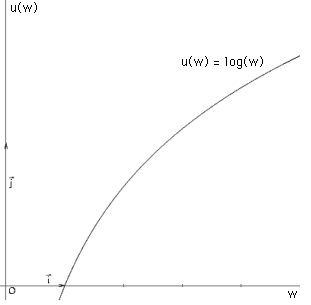 Risk-averse behavior is captured by a concave Bernoulli utility function, like a logarithmic function. For the above gamble, a risk-averse person whose Bernoulli utility function took the form u(w) = log(w), where w was the outcome, would have an expected utility over the gamble of: