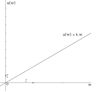 Risk-neutral behavior is captured by a linear Bernoulli function. For the above gamble, a risk-neutral person whose Bernoulli utility function took the form u(w) = 2w would have an expected utility over the gamble of: